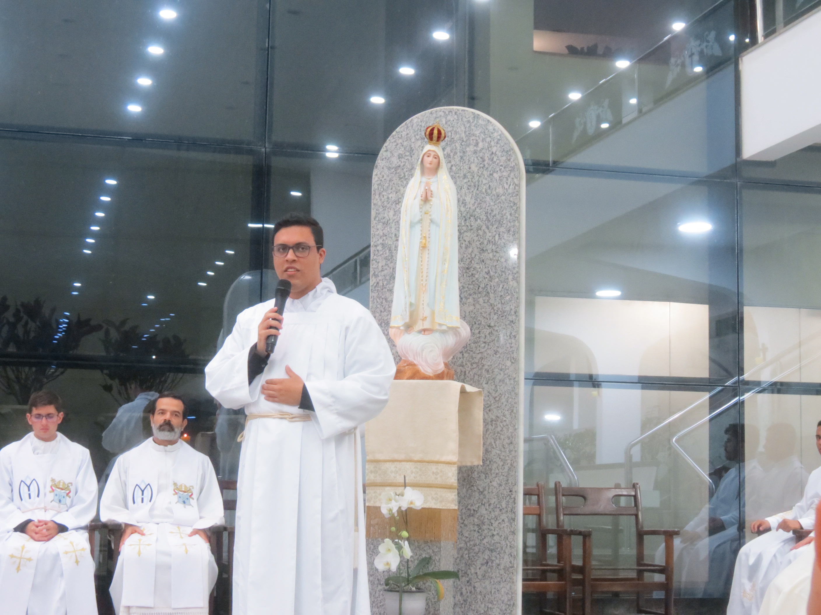 Com alegria e esperança, pedimos a intercessão da gloriosa sempre Virgem Maria, Nossa Senhora de Fátima, padroeira do nosso Seminário, por esses dois jovens e por todos aqueles que se preparam para servir a Deus e a Igreja.